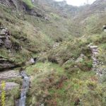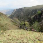 La gorge se resserre rapidement et nous devons alors emprunter par moment le lit du ruisseau qui coule quand même encore pas mal, mais ça passe bien. Nous alternons les remontées sur les berges et les descentes dans le ruisseau puis nous butons sur le petit cirque qui mène aux Aphalaeneko Borda. Là, c’est dré dans l’pentu sur environ 100m, nous nous accrochons parfois aux herbes pour nous hisser péniblement, mais finalement nous débouchons sur le petit plateau.