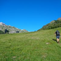 Nous prenons ensuite, à l’entée d’une zone de pâturages, une sente qui coupe les lacets que nous laissons rapidement pour continuer sur le sentier bien marqué. A l’approche de la première bergerie, nous récupérons cette piste que nous abandonnons pour de bon à hauteur de la seconde bergerie.