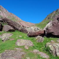 Beaux rochers rouges sous le col, de ce rouge typiques de la vallée d’Aspe.