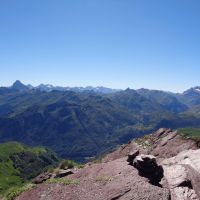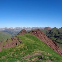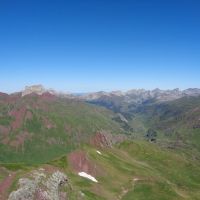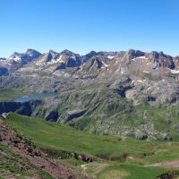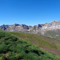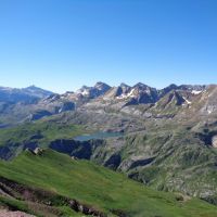 Quelle vue ! Le Catillo de Acher, la table des Trois Rois, le Pic d’Anie, la belle crête rocheuse des sommets Aspois est devant nous, et derrière, l’Ossau, le Balaïtous, l’Ariel, les Pics d’Enfer barrent l’horizon.