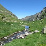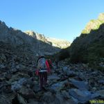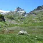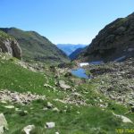 Il est 6h40 et le top départ est donnée. Un long cheminement parmi du petit éboulis nous dépose au lac Deth Horo où se reflète le majestueux sommet rocheux de la Forcanada. La flore est abondante et variée.