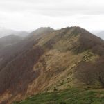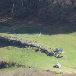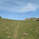 La descente depuis le Pic de Serau se fait hors sentier, dans une pente raide herbeuse qu’il est déconseillé de prendre par temps humide comme aujourd’hui, elle est fortement déconseillée, nous sommes avec des personnes peu aguerries, alors nous revenons sagement par le même chemin.
