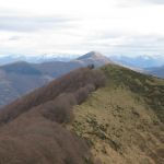 Nous reprenons le sentier derrière la cabane qui grimpe dré dans l’pentu jusqu’au pic de l’Araing. De là nous descendons un peu jusqu’au Pas de Moussaou pour suivre la crête étroite par endroit mais pas aérienne. Elle traverse une superbe hêtraie qui occupe le versant nord.