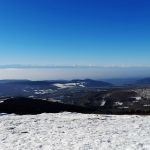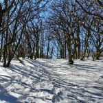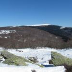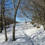 A faire de préférence en hiver ou au début du printemps car, en dehors du problème touristique, la vue sur la chaine est bien plus belle lorsque les sommets sont encore blanchis par la neige. Nous ne prenons pas les raquettes mais les crampons car avec l’alternance fonte en journée-gel nocturne, nous nous attendons plutôt à trouver des la neige très dure. En effet la neige est là dès 900m d’altitude, mais nous arrivons à contourner les endroits délicats et plus haut la neige est plus souple, les crampons resteront dans le sac.