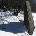 Nous le suivons en direction du Roc du Nouret en faisant un petit crochet pour voir un genre de menhir et nous montons enfin au Roc du Nouret où nous ne nous attardons pas, car le vent y est fort et froid. Nous trouvons un peu plus bas un coin protégé où nous déjeunons devant le spectacle des Pyrénées qui semblent parfois en lévitation et d’autre fois, se trouver sur l’autre rive d’un immense lac.