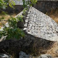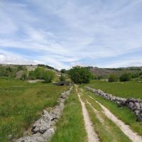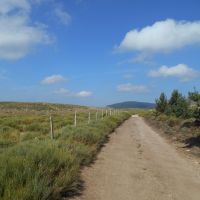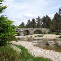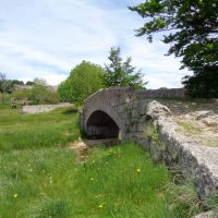 On rejoint peu après une petite route qui devient rapidement piste et environ 500m plus loin, on prend à droite la Draille du Languedoc qui longe un terrain clot et monte légèrement sur une croupe puis bute sur une croisée de chemins. Il faut s’orienter à gauche et soudain on se trouve devant un pont énorme, sur lequel ne passent que des pistes interdites à la circulation.