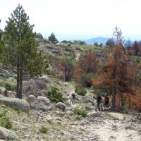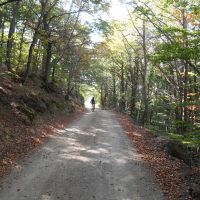 Pour notre seconde virée à Pont du tarn, nous avons pris la piste qui part du lieu-dit La Croix de Berthel. A Pont de Montvert, tournez le dos à Florac et suivez le panneau qui indique Croix de Berthel. Garrezvous au col, il y a des emplacement à l’entrée de la piste à gauche qui est celle que nous allons suivre. On démarre gentiment en forêt, ça monte un peu mais rien de méchant. Ne manquez pas l’énorme Draille sur la gauche, qui ressemble à une large piste de ski et qu’il faut remonter jusqu’à son somme. La montée est très rude et j’ai posé pied plusieurs fois, mais on y arrive 🙂