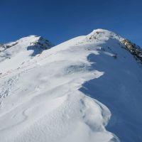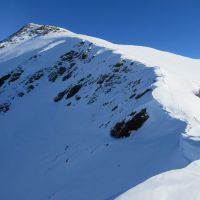 Arrivés au Port Vieux, la crête sommitale du Pic de Port Vieux, pentue et étroite, ne nous dit rien de bon avec cette chaleur. La neige est fuyante et de petites coulées déjà visible en plusieurs points de la crête nous le confirment.