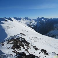 Là-haut c’est encore plus beau qu’en été avec les sommets qui affichent leur manteau blanc avec fierté. Nous en prenons plein la vue en 360 avec la Munia, les murailles de Barroude, le Gerbats, le Campbiel, le Garlitz, la Fulsa et tous les autres, impossible de les citer tous.