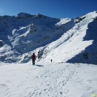 Dimanche c’est avec une température d’une douceur exceptionnelle de 0° que commence notre montée au Port Vieux, col frontalier entre la vallée de la Géla et la vallée de Pinarra.