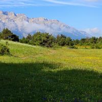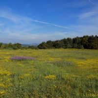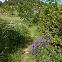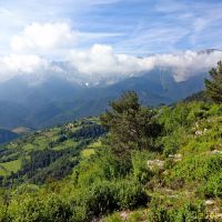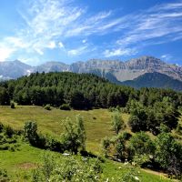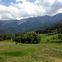 Face à l’église, à droite, nous trouvons un panneau « Miradors de l’Aliga ». Nous voilà partis pour quelques dizaines de minutes de sentier presque plat, pour les miradors que nous rejoignons rapidement. Il faut faire le tour de ce superbe plateau fleuri et boisé où nous rêvons de bâtir une maison 😉 pour accéder aux quatre miradors d’où les vues sont bien dégagées, sur la Serra del Cadi mais aussi sur les sommets Andorrans et la plaine de Cerdagne.