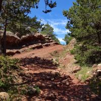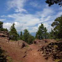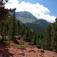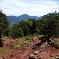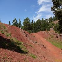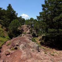 L’arrivée au Collet Roig est superbe toujours à cause de la couleur rouge de la terre. Après le Collet, le sentier est horizontal et ombragé, il reste en balcon et ne monte quasiment plus.