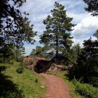 Nous prenons ensuite le beau sentier balisé qui mène au Prat de Cadi, ça grimpe rudement avec la chaleur orageuse du jour, et nous transpirons malgré les arbres qui nous gardent à couvert.