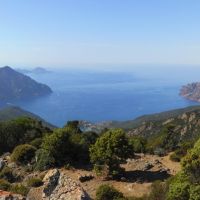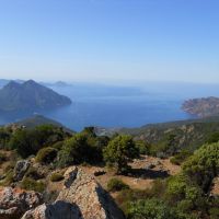 Arrivés à la Punta di a Literniccia, 758m, la pente se fait plus douce et c’est presque un plateau qui nous mène au point le plus haut avec cette fois des vues sur le golfe de Girolata à couper le souffle. Le sentier continue et descend jusqu’au village de Girolata, 750m plus bas, mais pour notre randonnée du jour, nous en resterons là. Sortez votre repas du sac et régalez-vous les sens.