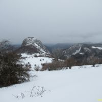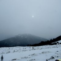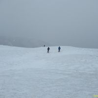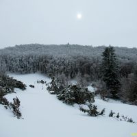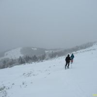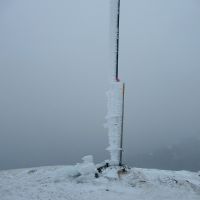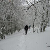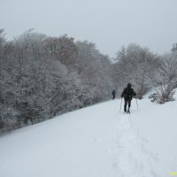 En temps normal, la vue est fabuleuse sur le cirque du Saint-Barthélémy, tout le massif de Tabe, sur le château de Montségur et la vallée, mais aujourd’hui, pas de vue, vent violent et sommet pelé et crête totalement verglacée. La crête est tout de même sans danger car la glace est si fine qu’elle se casse sous les raquettes.