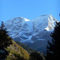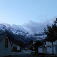 Quand nous allons passer ce week-end là à Gavarnie, c’est le beau temps qui nous accueille, la neige s’est invitée à la fête la nuit dernière, illuminant le cirque de sa blancheur immaculée. Le soleil brille et fait fondre une partie du manteau neigeux, çai ne nous contrarie pas trop car la randonnée prévue à l’Escuzana, 2847m, demande un terrain sec pour être sécurisée et plus ça fondra, plus sûre sera la randonnée.