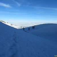 Au col, grimper en direction du sommet. La pente est rude et demande de l’attention en cas d’enneigement tardif. Le paysage vaut le détour, mais nous sommes à 2348m dans la massif de Tabe, une région où les sommets ne dépassent pas 2500m. Le Saint-Barthélémy fait figure ici de haut sommet et ses presque 1000m de dénivelé en font une jolie randonnée. Pour agrémenter cette randonnée, vous pouvez descendre au col du trou de l’Ours pour grimper au pic de Soularac, plus haut sommet de ce massif, qui culmine 20m plus haut.