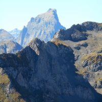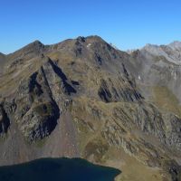 Après le col, prendre à gauche le sentier qui contourne le pic qui vous domine. On passe deux crêtes et on atteint rapidement le sommet, large croupe herbeuse. Belle vue en 360° sur les sommets de l’Ossau au Balaïtous en passant par le Palas, l’Ariel, le Grand Gabizos, le Geougue d’Arre, l’Arre Sourins etc…