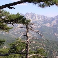 La suite est évidente, prendre à gauche du refuge, le sentier qui passe dans une faille rocheuse puis sous un énorme rocher bloqué dans cette faille qui forme un tunnel et enfin nous suivons un sentier boisé. Nous atteignons bientôt la paroi que nous devons escalader pour atteindre la tafunatu et c’est là que nous remercions les gardiens du parc qui ont aménagé la paroi afin de nous faciliter la tâche. Nous grimpons en tenant les cables et les marches métalliques nous hissent enfin au magnifique tafunatu après quelques dalles inclinées demandant de l’attention. De là, l’accès au sommet est assez délicat, il faut franchir un petit mur puis l’arête en pas de II qui conduit au sommet.