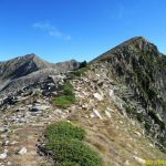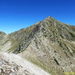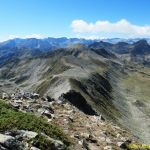 Nous revenons au col de Rosari pour continuer la crête en direction du Tuc de Marimanha. Elle est presque plate et agréable malgré quelques traversées de pierriers, la vue des deux côtés, sur le cirque de Marimanha et sur la vallée d’Arreu, est superbe.