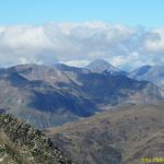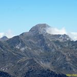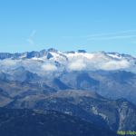 Nous passons un long moment au sommet, la vue est originale sur le Crabère, la crête Barlonguère – Trois Comtes, le Valier entre autre. Le massif de la Maladeta et la masse imposante des Posets sont maintenant bien dégagés et les Encantats affichent leurs cimes déchiquetées.