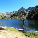 Nous remontons le Val d’Ariu Malo sans jamais traverser le ruisseau et arrivons vite au premier lac en moins d’une heure, l’Estanh de Baish de Baciver est une retenue avec un petit barrage assez moche. Il faut prendre le côté gauche du lac et après quelques minutes, dans une montée, un cairn indique la voie de gauche. Il est peu visible mais si vous manquez cette bifurcation, vous rejoindrez plus loin.