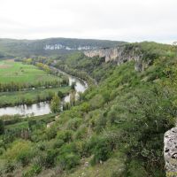 Une très belle balade de 15km et 280m de dénivelé, avec un point culminant hélas, dans la brume, quelques falaises abritant des cabanes troglodytes, de superbes cazelles, une rencontre avec un veau juste né et de beaux points de vue sur le Lot. Que demander de plus ?
